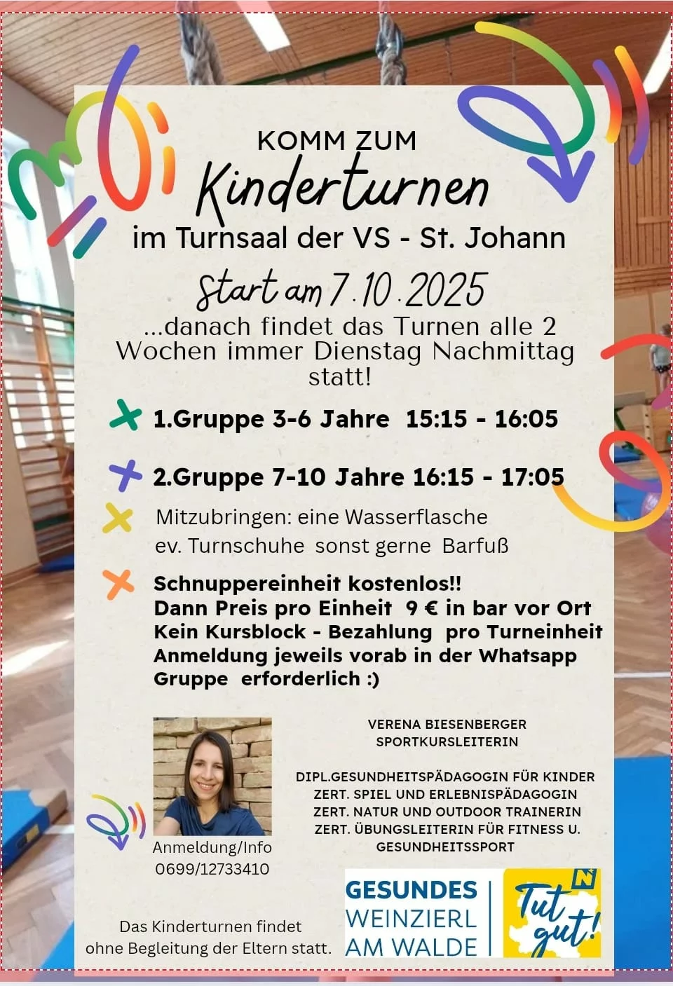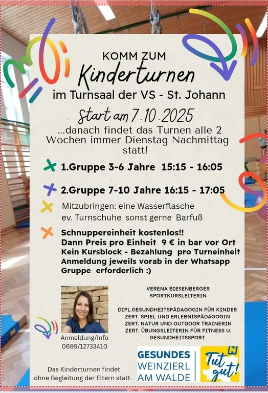Zusätzlich freue ich mich, als Übungsleiterin für das Eltern-Kind-Turnen bei der Sportunion Paudorf aktiv zu sein.